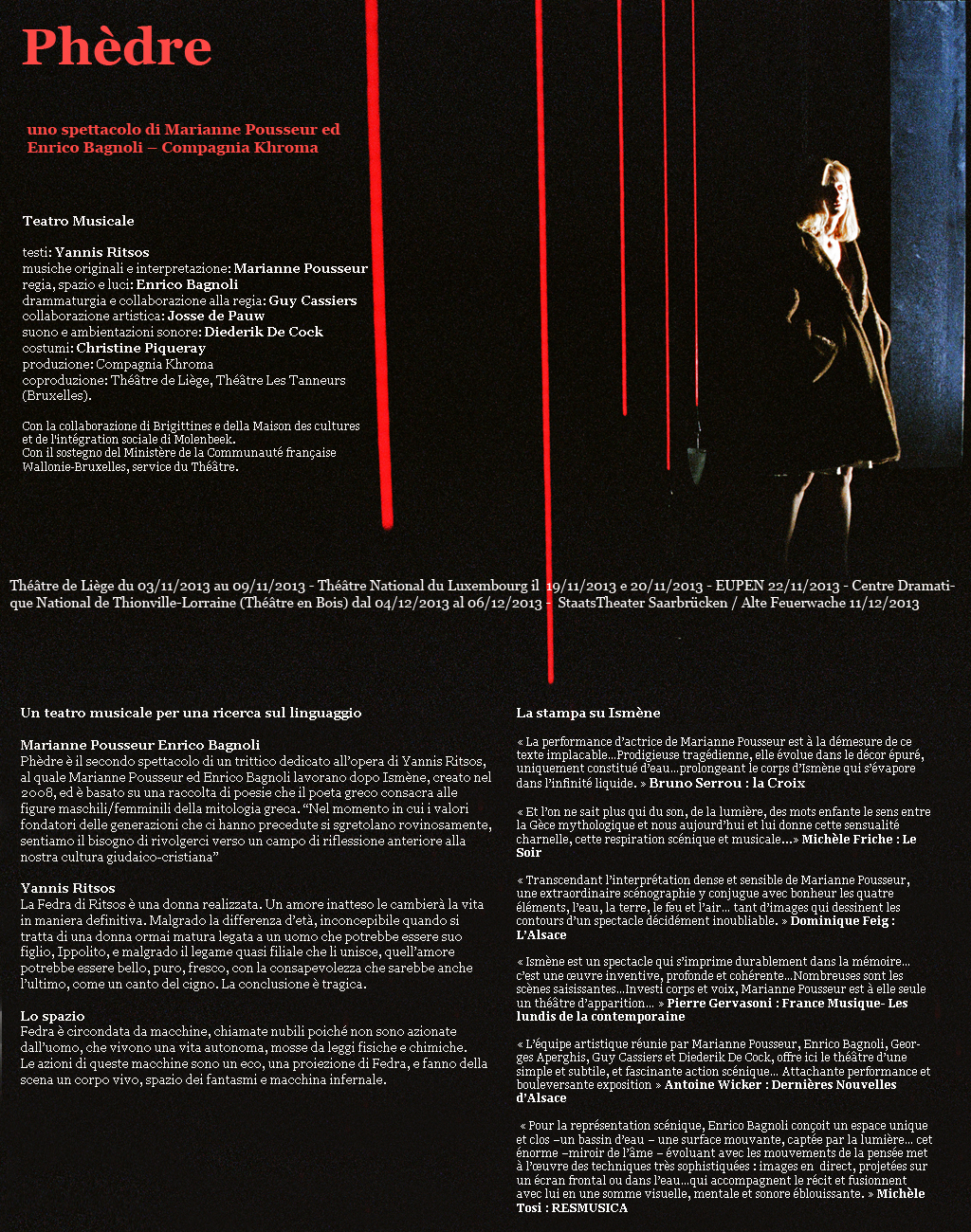 De Yannis Ritsos, musique originale de Marianne Pousseur